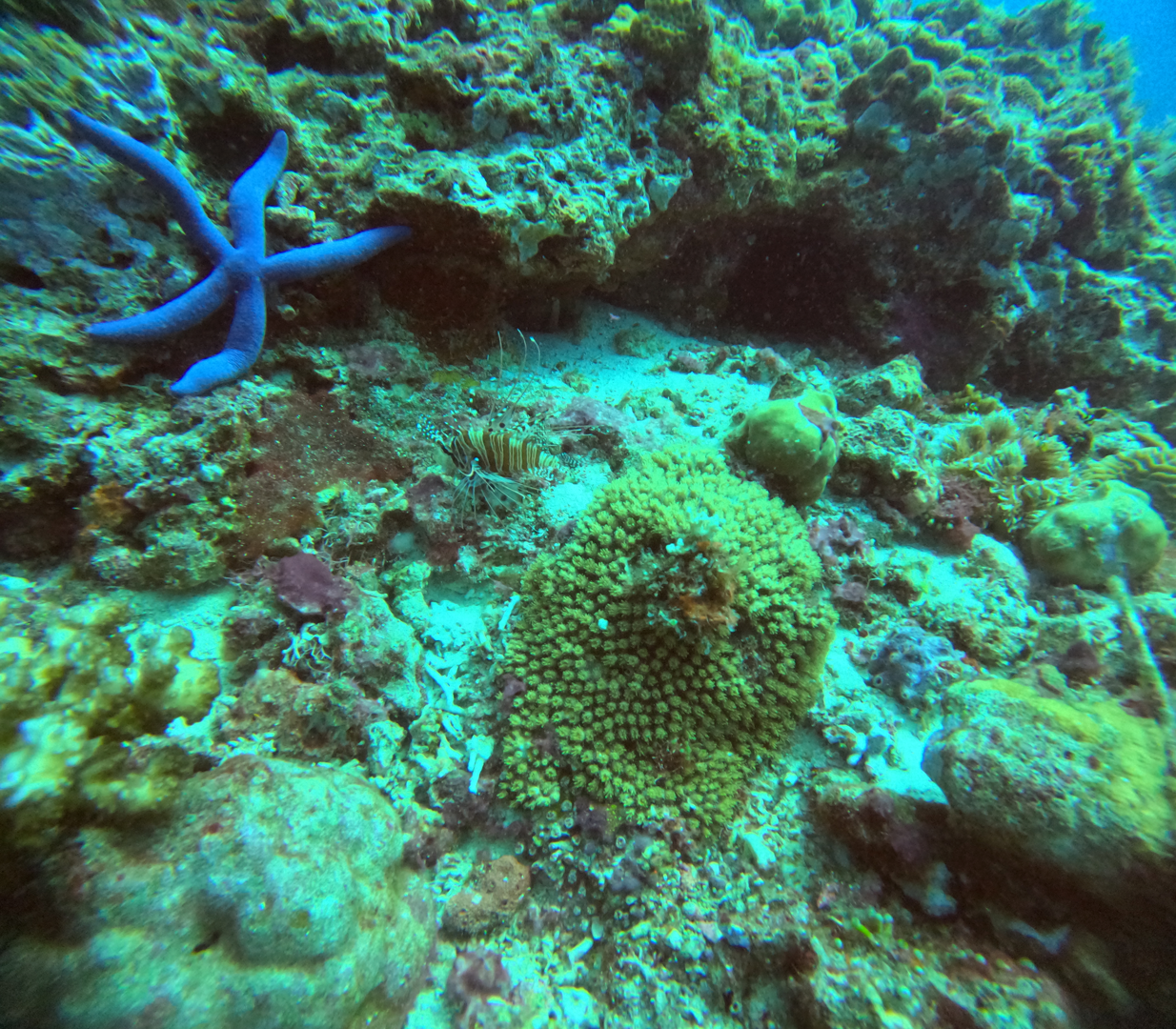 Las inmersiones duraron 46 y 47 minutos. Al principio solo veíamos corales y vida marina, hasta que de repente el instructor nos hizo una señal. Y entonces apareció.