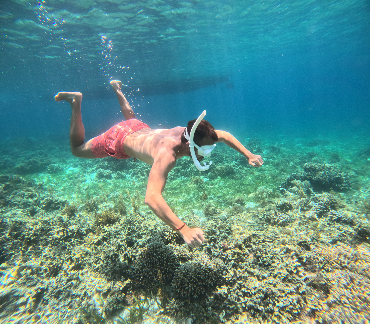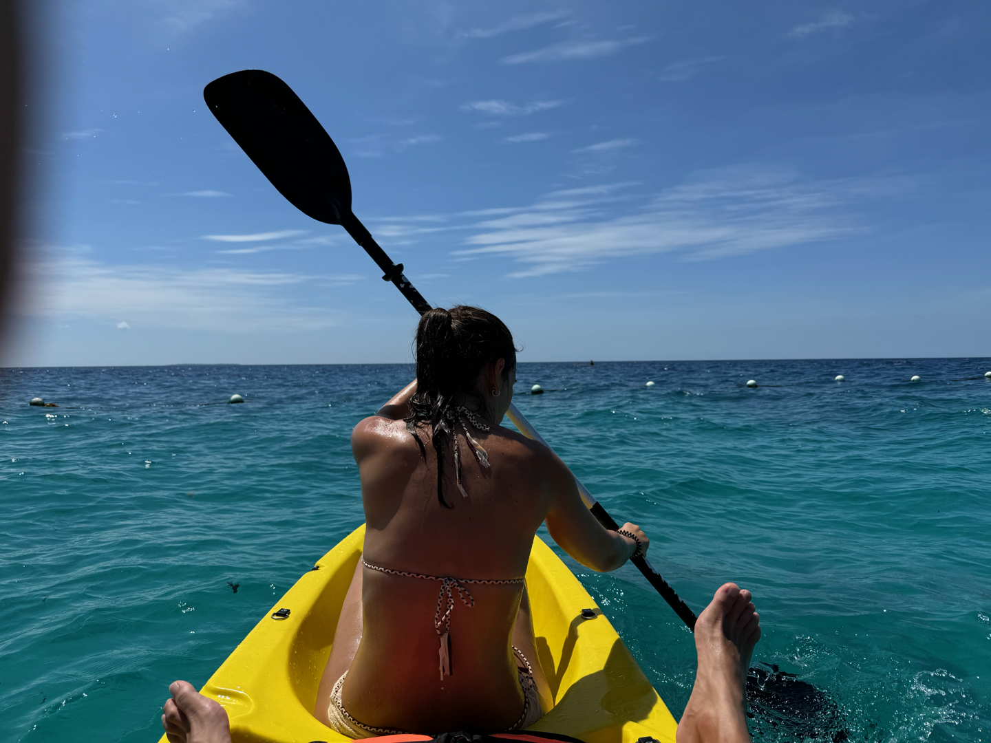 La mañana la dedicamos a algo sencillo pero muy agradecido: un poco de kayak y snorkel por la zona. Agua tranquila, sin prisas y sin un plan claro más allá de flotar, mirar peces y dejar pasar las horas.