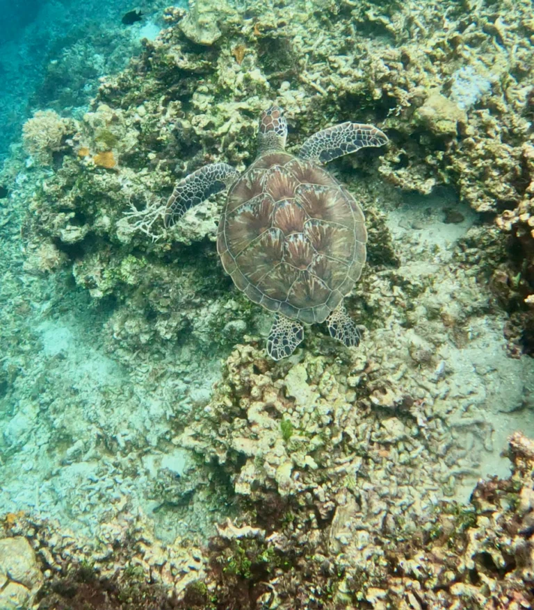 Mientras hacíamos snorkel, apareció una tortuga nadando tranquilamente a nuestro lado. Un momento de esos que no se olvidan y que hacen que todo el viaje cobre aún más sentido.