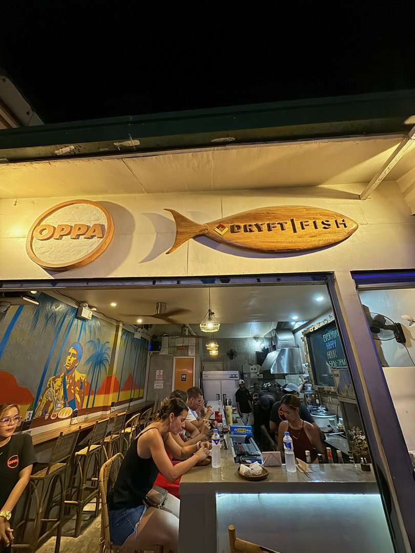 Para cenar, repetimos en el ya mítico OPPA Kitchen. El wrap de pescado volvió a caer… y volvió a estar brutal. Delichiocho.