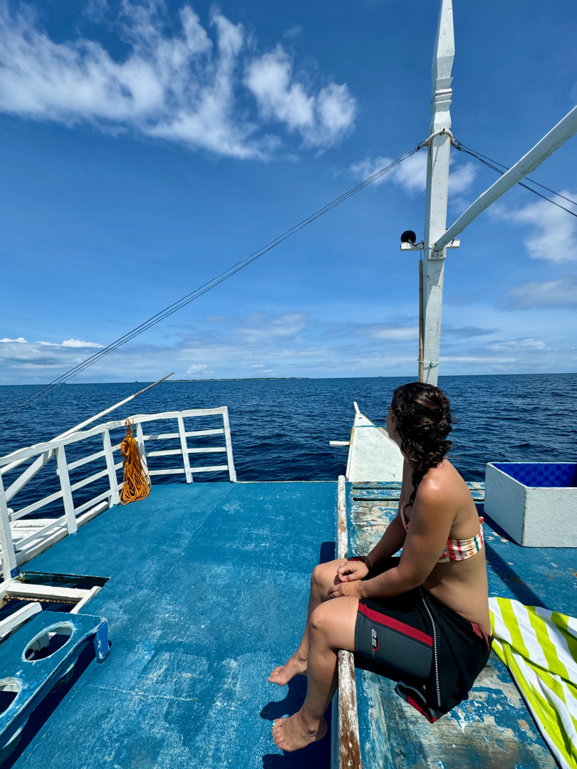 Desde el puerto, tocó subir a una barca típica filipina rumbo a Malapascua. El motor se paró varias veces y durante unos minutos pensamos que igual ese día no llegábamos… pero finalmente lo conseguimos.