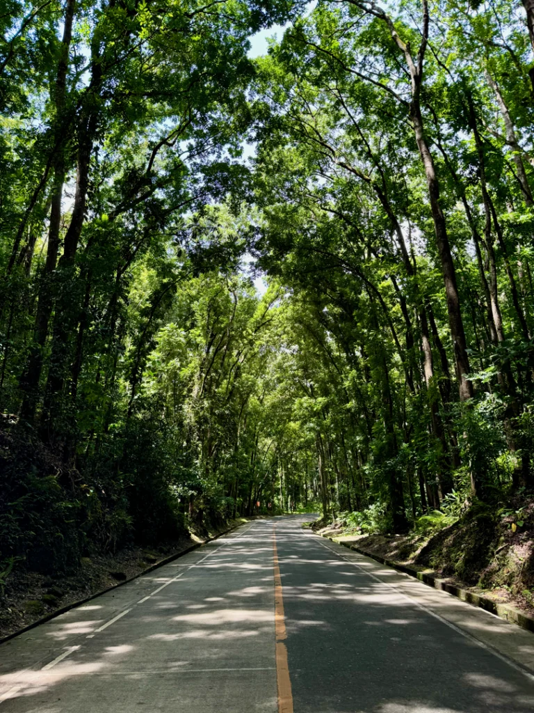 La siguiente parada fue el famoso Man-Made Forest, un bosque artificial de caobas creado tras la deforestación masiva sufrida durante la Segunda Guerra Mundial. Un tramo recto, perfectamente alineado, donde el sol desaparece y la temperatura baja de golpe. Un contraste brutal con el calor exterior.