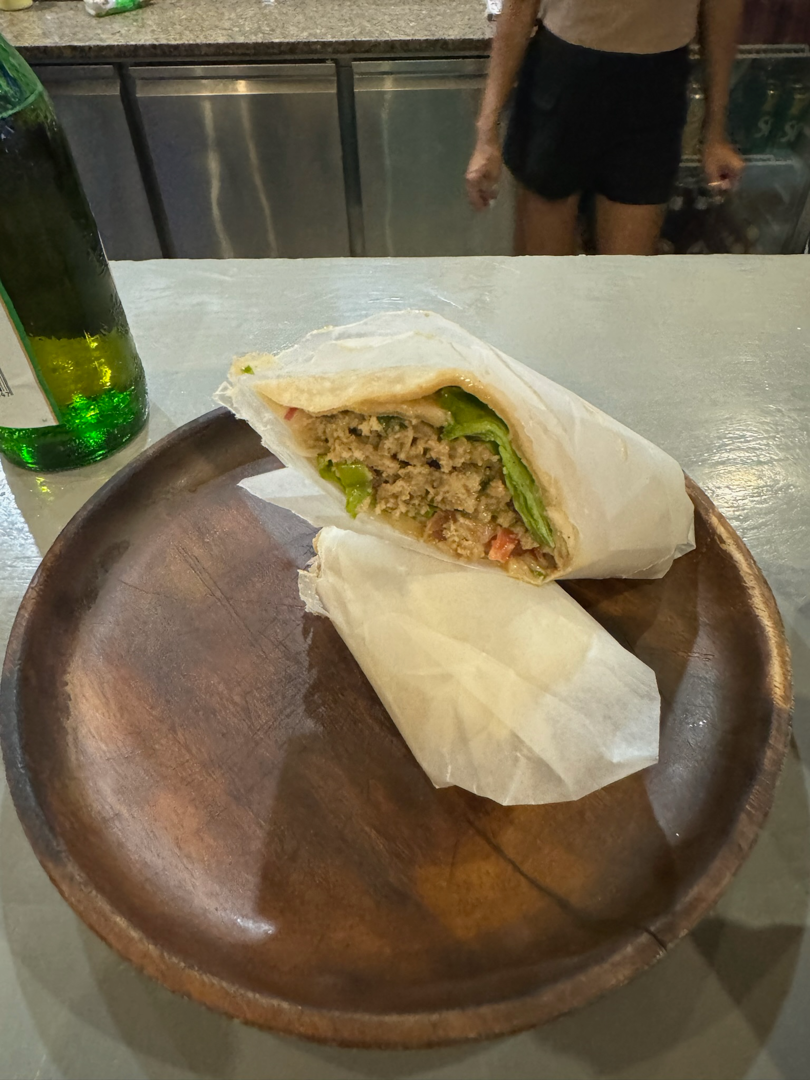 El wrap de pescado… madre mía. Tan bueno que repetimos varios días. Obviamente.